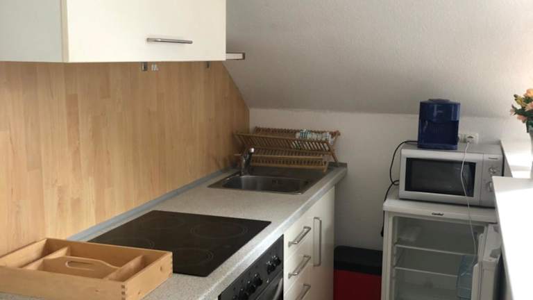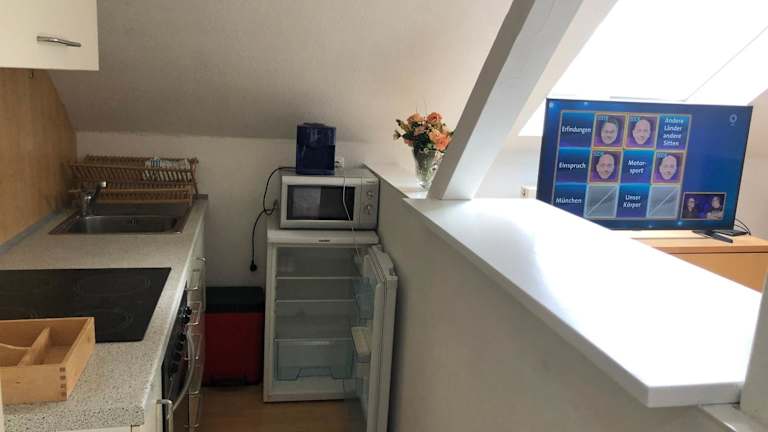 Die Wohnung verfügt über eine voll ausgestattete Küche mit Kühlschrank und Kaffeemaschine, um die Selbstversorgung zu ermöglichen. Es sind jedoch keine spezifischen Informationen zu zusätzlichen Verpflegungsmöglichkeiten vorhanden.