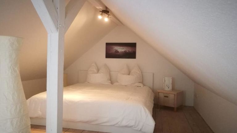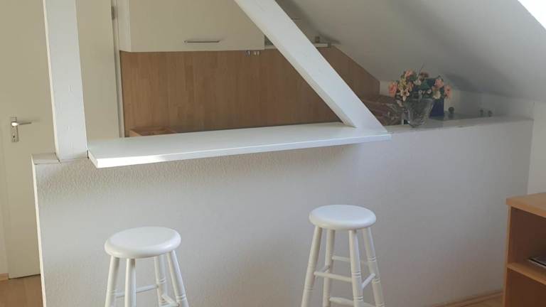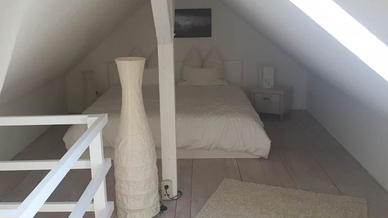 Die Maisonette-Wohnung besteht aus einem Schlafzimmer, einem Wohnzimmer und einem Badezimmer mit Dusche und Haartrockner. Handtücher und Bettwäsche werden bereitgestellt.