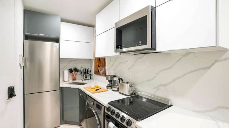 Die Ferienwohnung 48-3RW Brand New 1BR Prime Hells Kitchen - W D bietet kostenloses WLAN und ist klimatisiert. Sie umfasst 1 separates Schlafzimmer und eine voll ausgestattete Küche mit Kühlschrank und Geschirrspüler. Zudem steht ein Badezimmer zur Verfügung. Handtücher und Bettwäsche werden bereitgestellt.