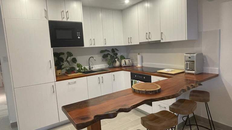 Die Ferienwohnung besteht aus 2 Schlafzimmern, einem Wohnzimmer und einer voll ausgestatteten Küche mit Kühlschrank und Kaffeemaschine. Es sind 2 Badezimmer mit Dusche und Haartrockner vorhanden. Handtücher und Bettwäsche werden bereitgestellt.