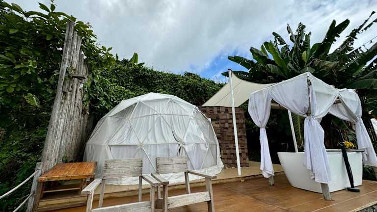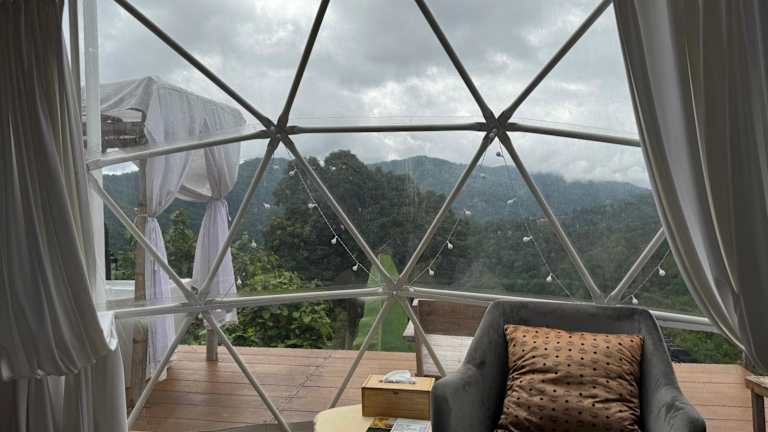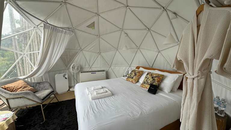 Glamping in den Bergen von Chiang Mai! Es gibt mehrere Bubble-Zelte die alle eine wunderschöne Aussicht auf die Berge von Chiang Mai bieten. Allerdings könnte die Wartung der Zelte verbessert werden, weil schon diverse Abnützungserscheinungen sichtbar waren.