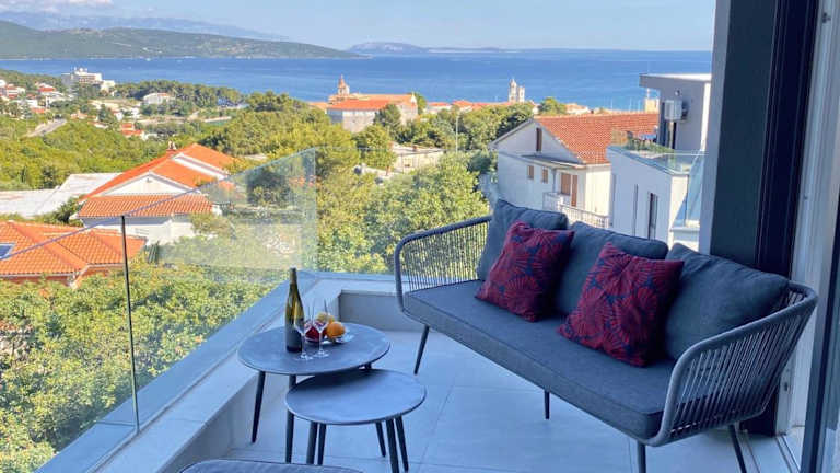 Die Unterkunft 4Star Seaview Penthouse Krk bietet einen Ausblick auf die Stadt und verfügt über einen Balkon sowie eine Terrasse. Es stehen kostenlose Parkmöglichkeiten zur Verfügung.