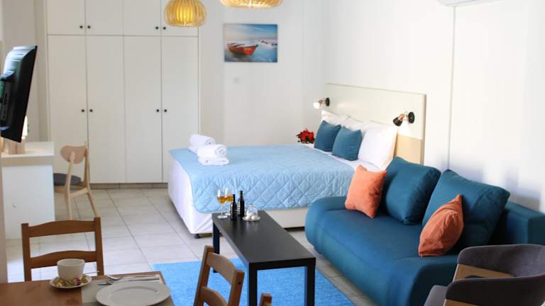 Die 4YOU STUDIOS befinden sich im Zentrum von Larnaka, nur 500 Meter vom Strand Finikoudes entfernt. Der Strand Mackenzie ist 2,4 km entfernt. In der Umgebung befinden sich Sehenswürdigkeiten wie die Lazarus-Kirche, Lazarus-Platz, Europaplatz und das Byzantinische Museum von St. Lazarus. Der Flughafen Larnaka ist 3 km entfernt.
