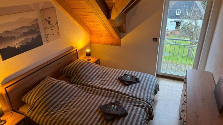 Die Ferienwohnung verfügt über 2 Schlafzimmer, ein Wohnzimmer, eine gut ausgestattete Küche, sowie ein Badezimmer mit Dusche und Badewanne. Ein Satelliten Flachbild-TV ist ebenfalls vorhanden. Handtücher und Bettwäsche werden zur Verfügung gestellt.