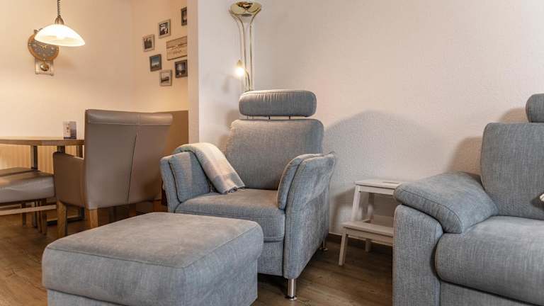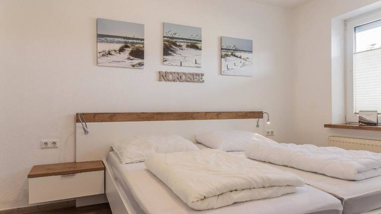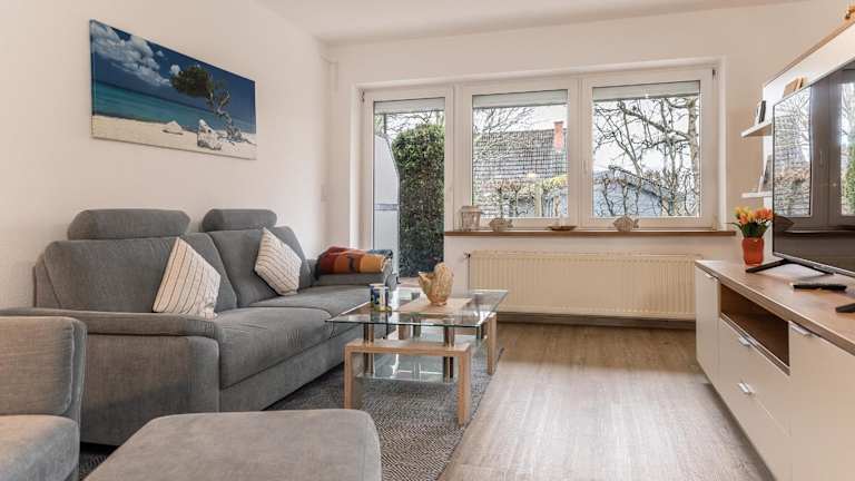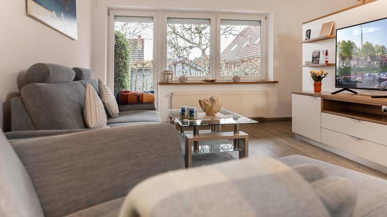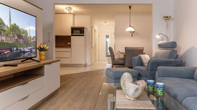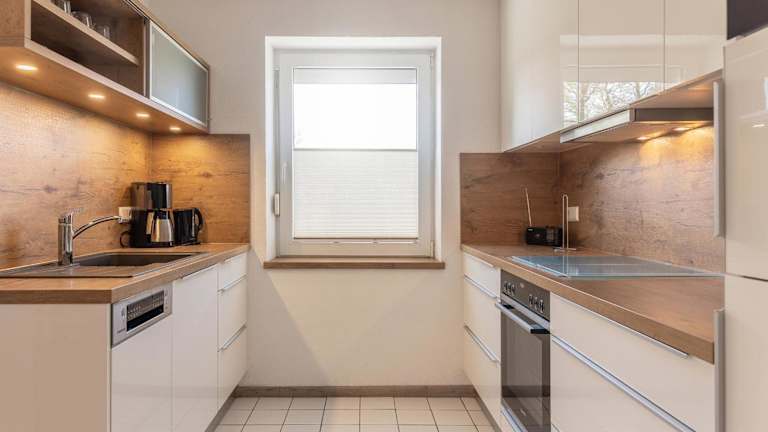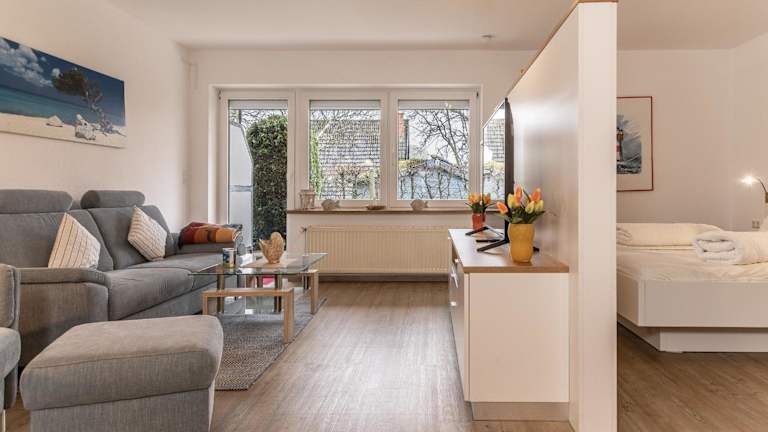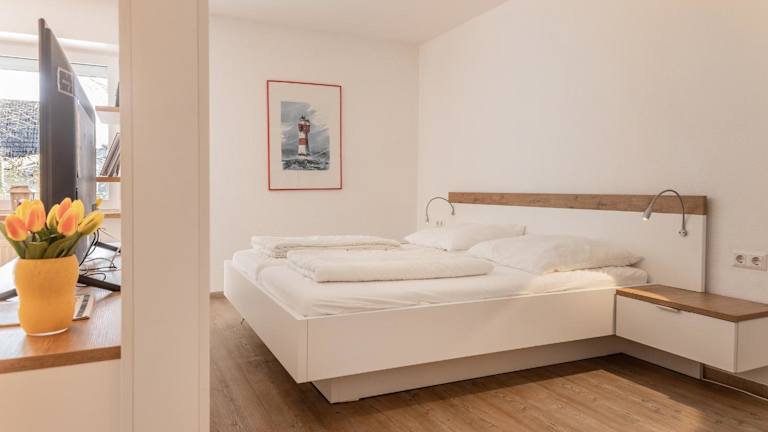 Die geräumige Unterkunft verfügt über ein Schlafzimmer, ein Wohnzimmer mit einem TV mit Satellitenkanälen sowie eine voll ausgestattete Küche mit Kühlschrank und Geschirrspüler. Ein Badezimmer mit Dusche ergänzt die Ausstattung der Ferienwohnung. Bettwäsche und Handtücher sind nicht im Preis enthalten und können auf Anfrage ausgeliehen oder selbst mitgebracht werden.