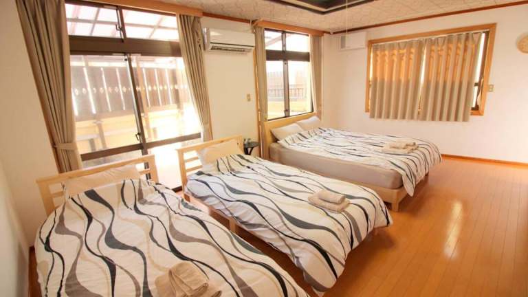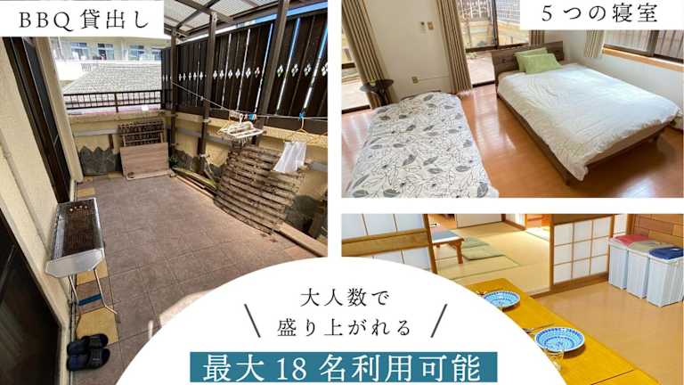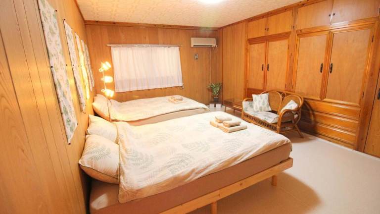 Die klimatisierte Wohnung im 5LDK宜野湾ゆんたくHOUSE verfügt über 5 separate Schlafzimmer, ein Wohnzimmer, eine voll ausgestattete Küche und ein Badezimmer. Die Wohnung bietet auch einen Balkon, der einen schönen Ausblick auf die Umgebung bietet. Kostenloses WLAN und ein Flachbildfernseher sorgen für Unterhaltung und Komfort während Ihres Aufenthalts.