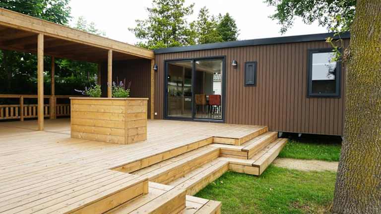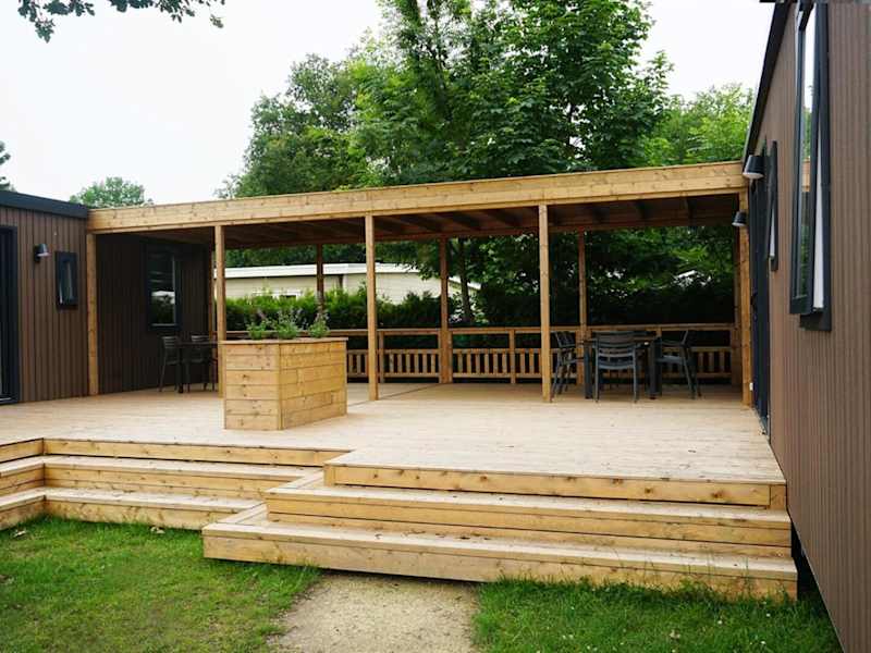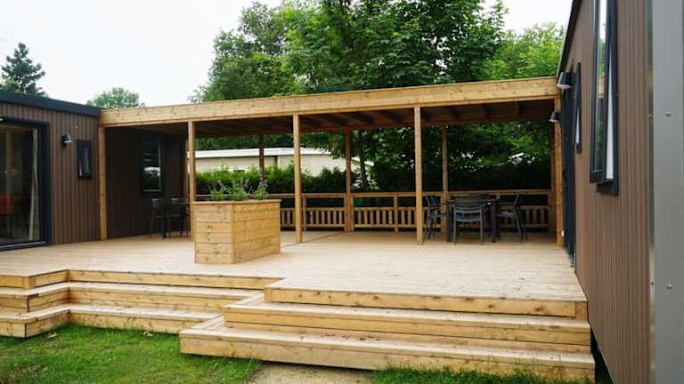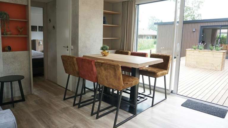 Die 6 6-persoons Familie lodge bietet eine komfortable Unterkunft mit einem Garten und einer Terrasse, die für Familien geeignet ist. Die Lodge ist modern eingerichtet und verfügt über praktische Annehmlichkeiten.