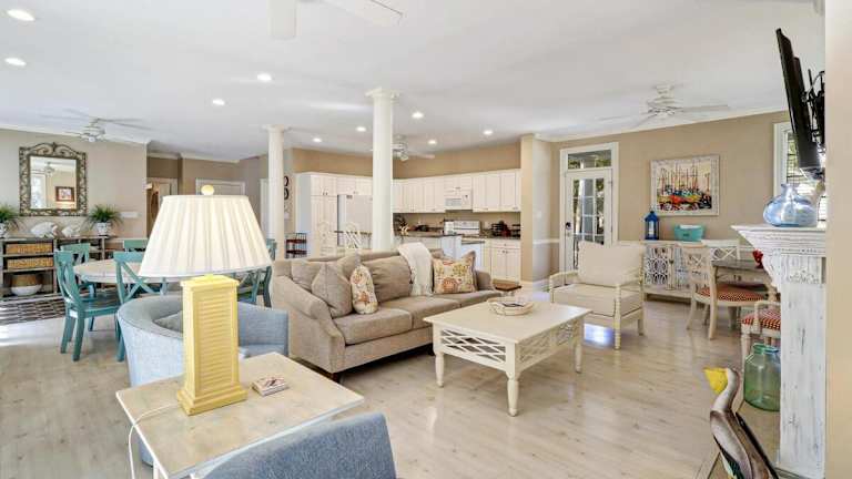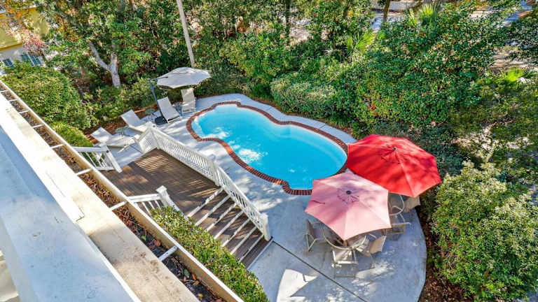 Die Unterkunft 6 bd 4 and one half bath Family Friendly Beach Home mit einem beheizten Pool ist familienfreundlich gestaltet und bietet Annehmlichkeiten wie einen Garten, eine Veranda oder ein Patio sowie kostenfreies WLAN.