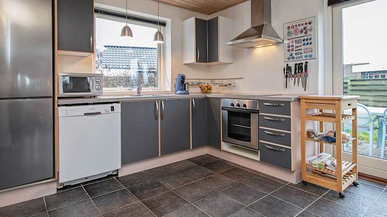Das Ferienhaus umfasst 3 Schlafzimmer und ein Wohnzimmer mit TV. Die gut ausgestattete Küche bietet Annehmlichkeiten wie einen Kühlschrank und einen Geschirrspüler. Des Weiteren steht ein Badezimmer mit Badewanne oder Dusche zur Verfügung.