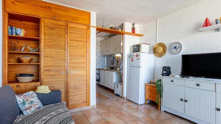 Die Unterkunft bietet ein Schlafzimmer, ein Badezimmer, Bettwäsche und Handtücher. Zur Ausstattung gehören ein Flachbild-TV, ein Essbereich und eine voll ausgestattete Küche. Die Terrasse mit Meerblick ergänzt die Annehmlichkeiten der Unterkunft.