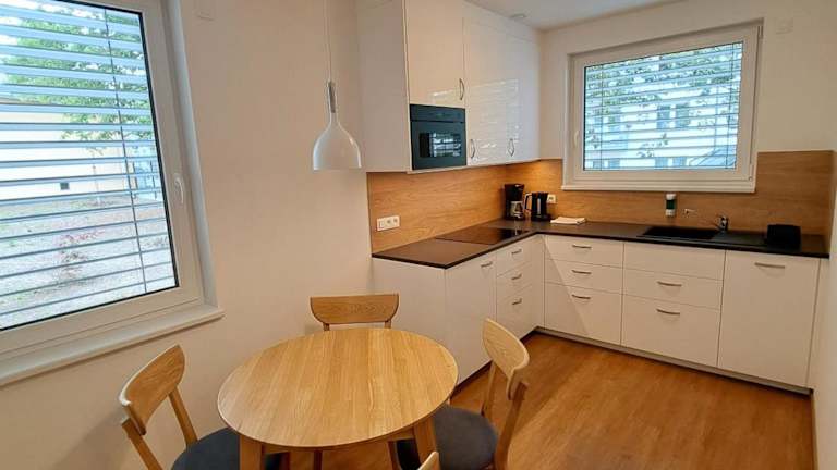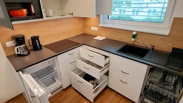 Die Zimmer sind mit einem Flachbild-TV und einem eigenen Badezimmer ausgestattet. Die Küchenzeile bietet grundlegende Küchengeräte, darunter Kühlschrank, Geschirrspüler und Mikrowelle.