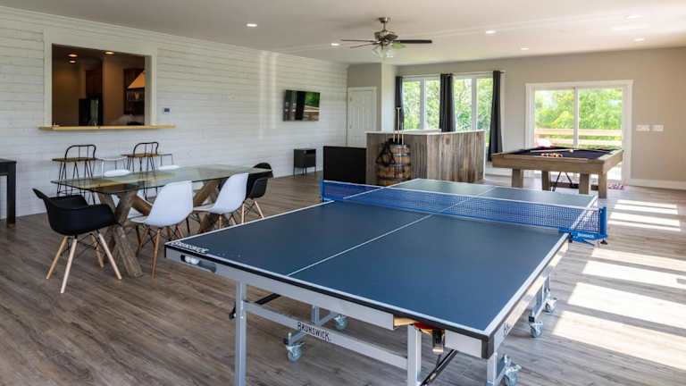 Das Ferienhaus verfügt über ein Spielzimmer mit Aktivitäten wie Tischtennis und Billard.