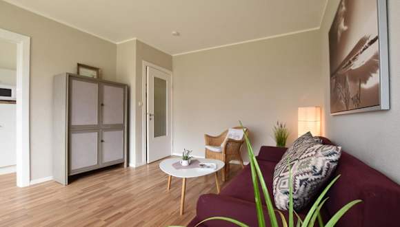 Die Ferienwohnung besteht aus einem Schlafzimmer und einem Wohnzimmer, das mit einem TV mit Satellitenkanälen ausgestattet ist. Eine voll ausgestattete Küche ist vorhanden, die über einen Kühlschrank und einen Geschirrspüler verfügt. Des Weiteren steht ein Badezimmer mit einer Dusche zur Verfügung. Handtücher und Bettwäsche können gegen Aufpreis bereitgestellt werden.