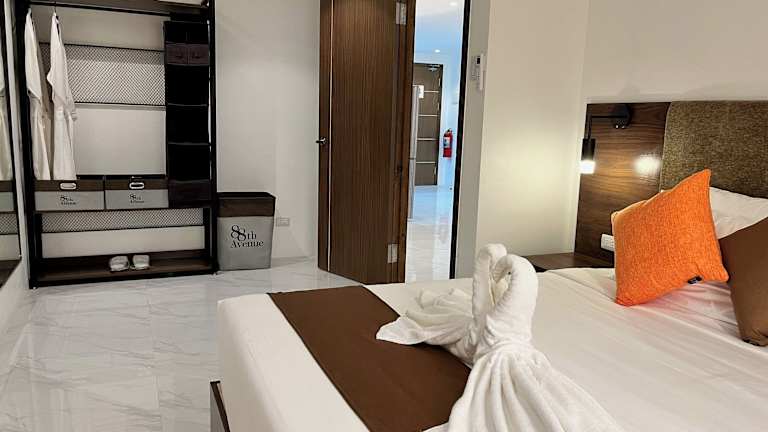 Die klimatisierten Unterkünfte im 88th Avenue bieten Ihnen Komfort und Gemütlichkeit. Jedes Zimmer verfügt über einen Balkon mit Stadtblick, einen Sitzbereich und einen Flachbild-TV. Die voll ausgestattete Küchenzeile umfasst einen Kühlschrank und eine Mikrowelle. Im eigenen Bad finden Sie eine Dusche und kostenlose Pflegeprodukte. Einige Zimmer haben auch Zugang zu einem Gemeinschaftsbad mit einer Badewanne, einem Haartrockner, Hausschuhen und Bademänteln.