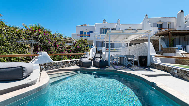 Erleben Sie einen traumhaften Aufenthalt im 9 Muses Villas Mykonos, das nur 2 km von Ornos entfernt liegt. Genießen Sie den Außenpool, den Garten und die klimatisierten Unterkünfte mit Balkon und kostenfreiem WLAN. Die Villen bieten Meerblick, einen gemütlichen Sitzbereich und eine voll ausgestattete Küche. Entspannen Sie auf der Terrasse oder nutzen Sie den Grill. Der Strand Psarou und Korfos sind nur wenige Kilometer entfernt. Der Flughafen Mykonos ist ebenfalls in der Nähe und ein kostenloser Flughafentransfer wird angeboten.