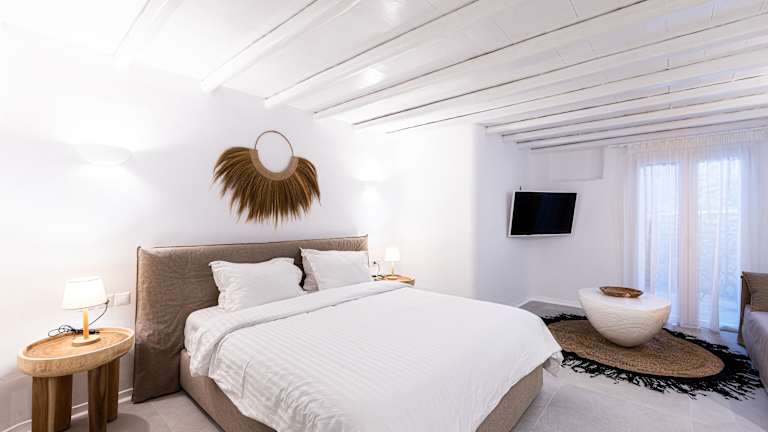 Das 9 Muses Villas Mykonos liegt in einer ruhigen Gegend, nur 2 km von Ornos entfernt. Die Umgebung ist von malerischen Stränden und atemberaubender Natur geprägt. Der Strand Psarou und Korfos sind beliebte Orte, die Sie in kurzer Zeit erreichen können. Der Flughafen Mykonos ist ebenfalls in der Nähe, sodass die Anreise zum Hotel problemlos ist.