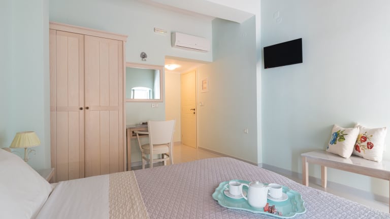 Das Hotel bietet ein Frühstück im Gartenbereich an, der einen herrlichen Blick auf die Burg Palamidi bietet. In der unmittelbaren Umgebung des Hotels finden Sie auch eine Vielzahl von Restaurants, Minimärkten und Café-Bars, in denen Sie lokale Spezialitäten und Getränke genießen können.