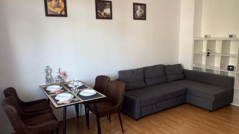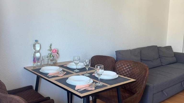 Die Ferienwohnung verfügt über ein Schlafzimmer, ein Wohnzimmer sowie einen Flachbild-TV. Die gut ausgestattete Küche ist mit einem Kühlschrank und einem Geschirrspüler ausgestattet. Zudem gibt es ein Badezimmer mit einer Badewanne.