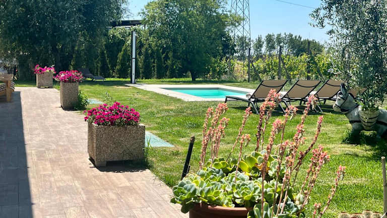 A Casa di Elena bietet Übernachtungsmöglichkeiten in einem Ferienhaus mit Klimaanlage. Zu den Annehmlichkeiten gehören ein saisonaler Außenpool, ein Garten und eine Terrasse. Die Unterkunft gewährt Gästen Zugang zu einem Privatparkplatz und kostenlosem WLAN mit Blick auf den Pool.