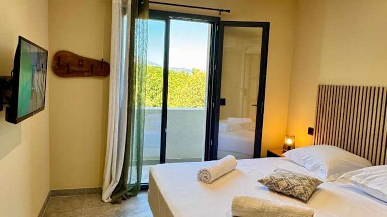 Die Villa bietet zwei geräumige Schlafzimmer, die Platz für eine Familie oder eine Gruppe von Freunden bieten. Die Küche ist gut ausgestattet mit einem Kühlschrank und einem Geschirrspüler, so dass Sie Ihre eigenen Mahlzeiten zubereiten können. Der Flachbild-TV und der gemütliche Sitzbereich laden zum Entspannen ein. Das Badezimmer verfügt über eine Dusche und Handtücher und Bettwäsche können gegen Aufpreis zur Verfügung gestellt werden. Eine Terrasse steht Ihnen zur Verfügung, wo Sie den Blick auf die Berge genießen können.