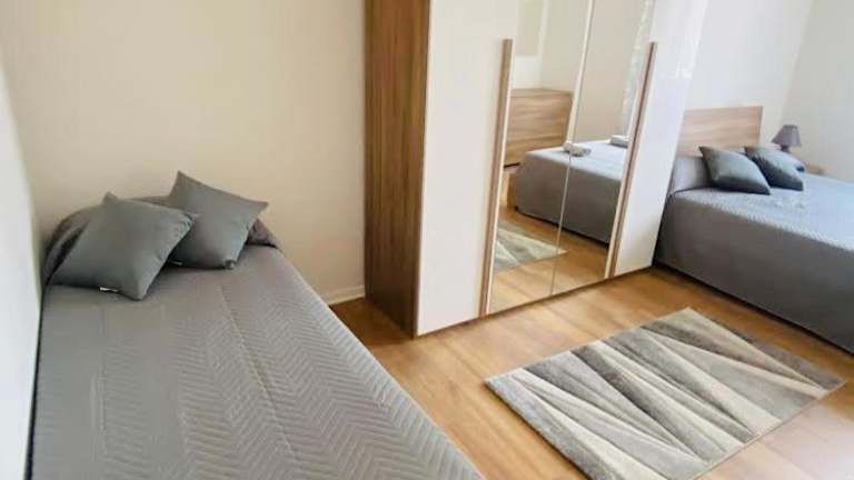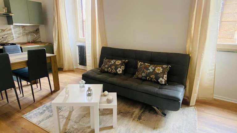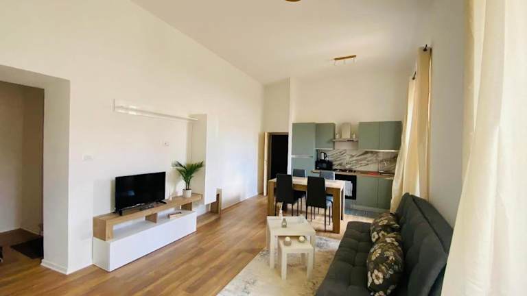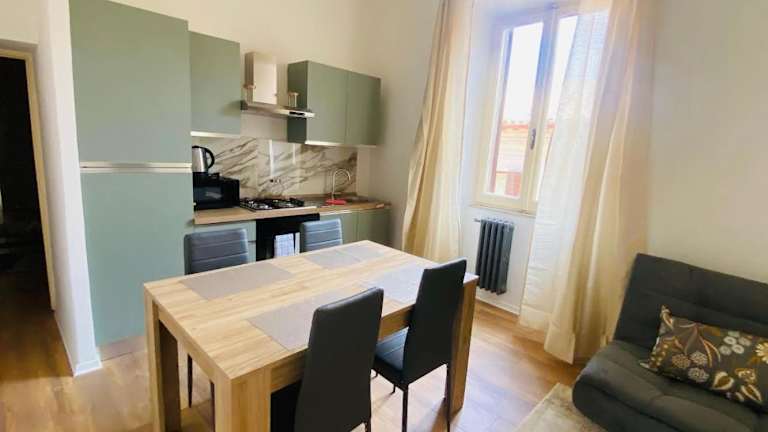Die Ferienwohnung besteht aus einem Schlafzimmer und einem Wohnzimmer. Sie verfügt über eine voll ausgestattete Küche, die mit einem Kühlschrank und einer Kaffeemaschine ausgestattet ist. Des Weiteren enthält das Bad ein Bidet sowie eine Dusche. Handtücher und Bettwäsche werden bereitgestellt.