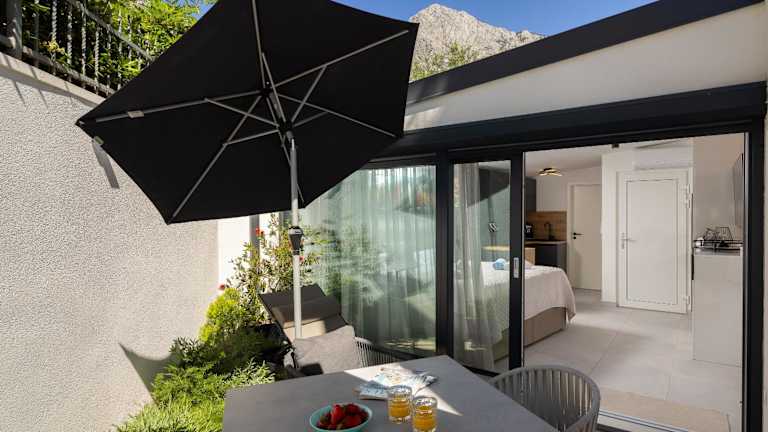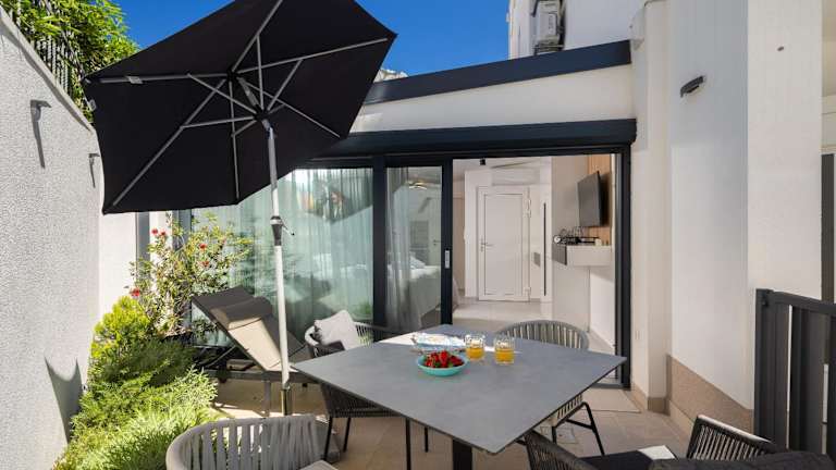 Die Apartments sind ausgestattet mit einem Sitzbereich, einem Satelliten-Flachbild-TV, einer voll ausgestatteten Küche mit Kühlschrank, Geschirrspüler, Ofen, Mikrowelle, Herdplatte, Kaffeemaschine und Wasserkocher. Jedes Apartment verfügt über ein eigenes Badezimmer mit Dusche und Haartrockner sowie eine Veranda oder Patio.