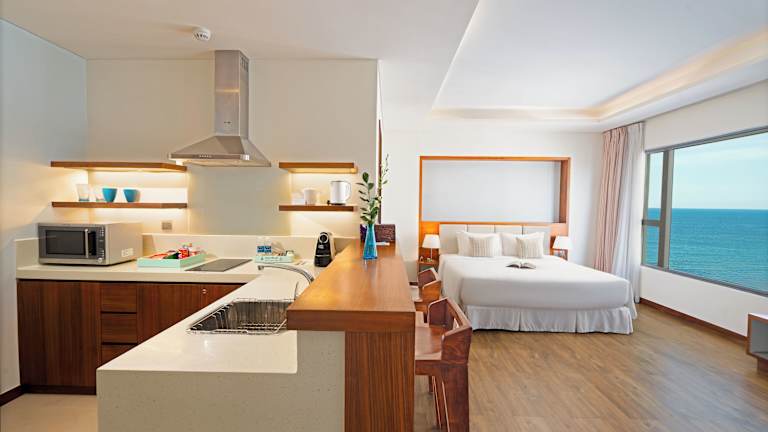 Nur 50 m vom Strand entfernt erwartet Sie das A La Carte Da Nang Beach mit einem Außenpool, einem Fitnesscenter und einem Spa. Die Studios und Apartments bieten modernen Komfort mit einem Wohn- und Essbereich, Flachbild-Kabel-TV und eigenem Bad. Das Hotel verfügt über ein Restaurant, in dem Sie à la carte oder vom Buffet speisen können, sowie eine Bar und Zimmerservice. Zu den weiteren Annehmlichkeiten gehören ein Spielezimmer, ein Kinderspielplatz, eine Bibliothek und ein Kinderclub.