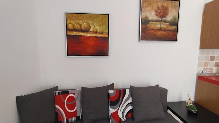 Die Ferienwohnung umfasst 1 Schlafzimmer, ein Wohnzimmer sowie ein Badezimmer, das mit einem Bidet und einer Dusche ausgestattet ist.