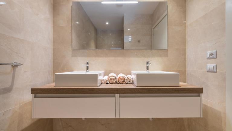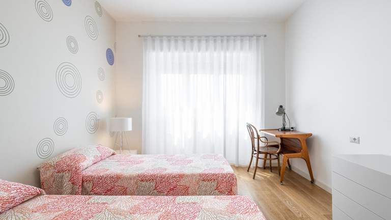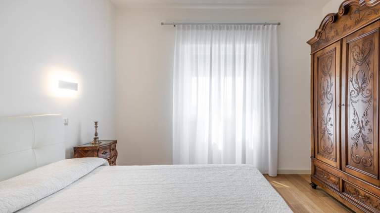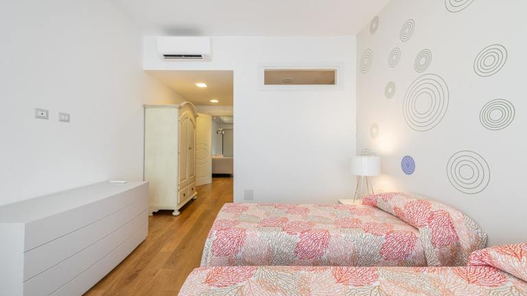 Die Ferienwohnung umfasst zwei Schlafzimmer, ein Wohnzimmer, eine gut ausgestattete Küche mit Kühlschrank und Geschirrspüler sowie zwei Badezimmer mit Bidet. Zudem sind ein Flachbild-TV und eine Terrasse vorhanden, auf der sich der Blick auf das Meer genießen lässt.