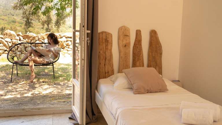 Die Unterkunft A Machja befindet sich in Olmiccia, in der Nähe von Propriano Port, etwa 15 km entfernt. Weitere Sehenswürdigkeiten in der Umgebung sind die Ausgrabungsstätte Cucuruzzu und Capula in 16 km Entfernung, der Fels Löwe von Roccapina in 33 km sowie der Hafen von Porto Vecchio, der sich 49 km entfernt befindet.