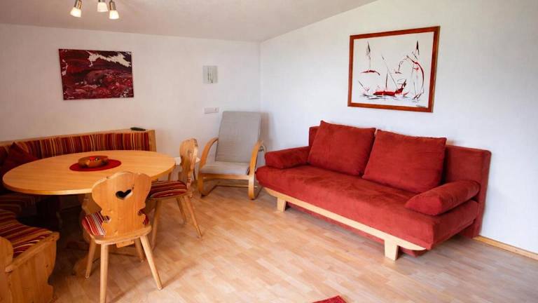 Die Ferienwohnung verfügt über ein Schlafzimmer, ein Wohnzimmer und eine gut ausgestattete Küche. Zur weiteren Ausstattung gehören ein Balkon mit Bergblick, ein Badezimmer mit Dusche und Badewanne, sowie ein Satelliten-Flachbild-TV. Handtücher und Bettwäsche werden bereitgestellt und ein Abstellraum für Skier ist ebenfalls vorhanden.