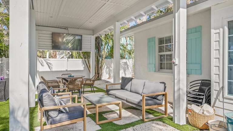 Das Ferienhaus A Wave From It All - New Luxury Renovated Home Heated Pool Cabana Hammock Walk to Beach in Anna Maria ist der perfekte Ort für einen entspannten Urlaub. Mit einem eigenen Pool, einem Garten und einer Terrasse bietet diese Unterkunft alle Annehmlichkeiten, die Sie für einen komfortablen Aufenthalt benötigen. Die klimatisierten Zimmer und die voll ausgestattete Küche sorgen dafür, dass es Ihnen an nichts fehlt. In der Nähe befinden sich auch verschiedene Sehenswürdigkeiten wie der Anna Maria City Pier und das Kunstmuseum John and Mable Ringling.