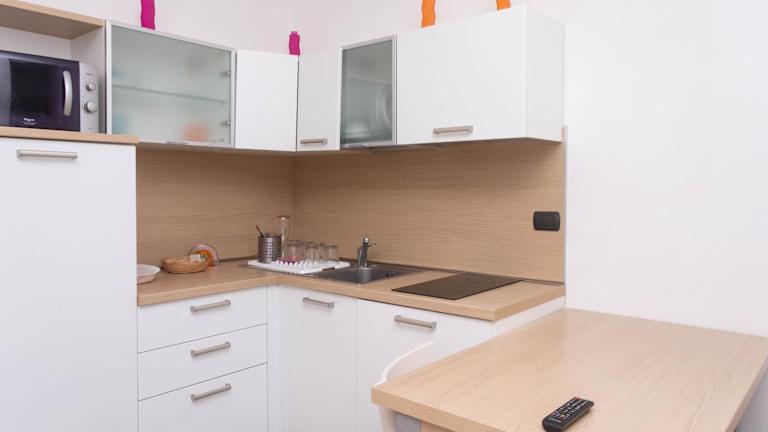 Die Ferienwohnung verfügt über eine voll ausgestattete Küchenzeile, die es Gästen ermöglicht, eigene Mahlzeiten zubereiten zu können. Es sind keine weiteren Informationen zu Verpflegungsmöglichkeiten vorhanden.