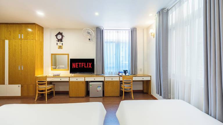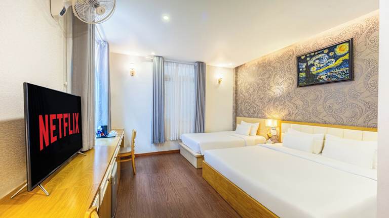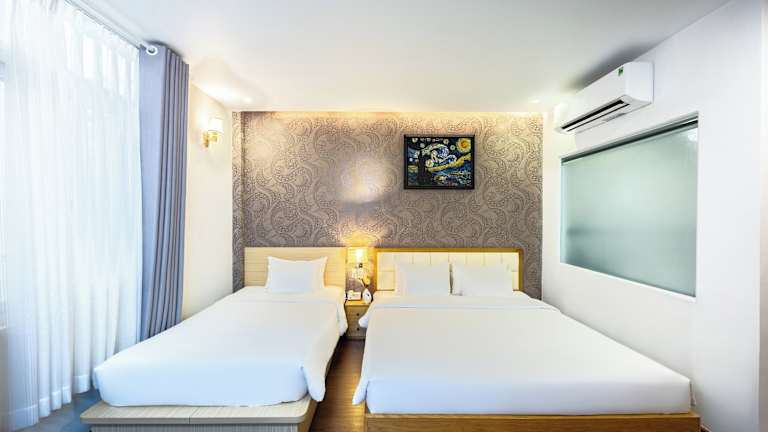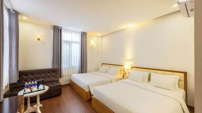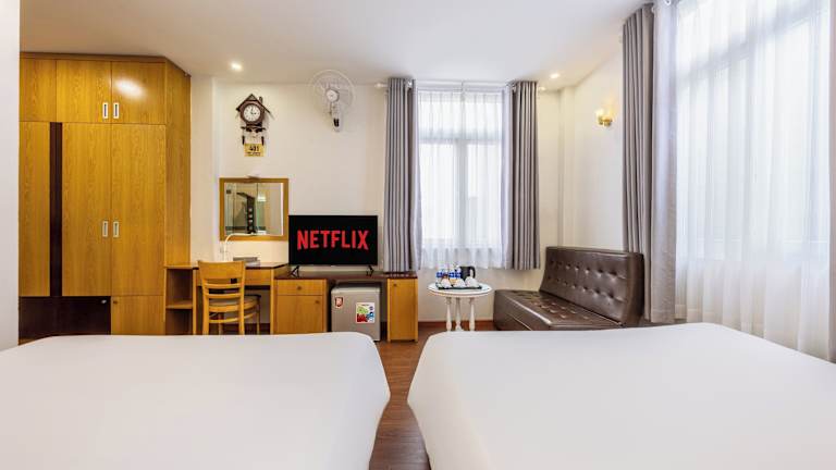 Das Minh Vy Hotel bietet einfache und elegante Zimmer, die mit Annehmlichkeiten wie Klimaanlage, Kabel-TV und einer Minibar ausgestattet sind. Jedes Zimmer verfügt über ein eigenes Bad mit Dusche, Hausschuhen und Handtüchern. Kabel-TV steht ebenfalls zur Verfügung.