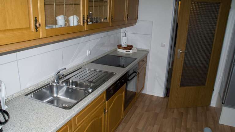 Die Ferienwohnung beinhaltet eine gut ausgestattete Küche, die mit einem Kühlschrank und einem Geschirrspüler ausgestattet ist, um eigene Mahlzeiten zubereiten zu können. Ein Grill steht ebenfalls zur Verfügung.