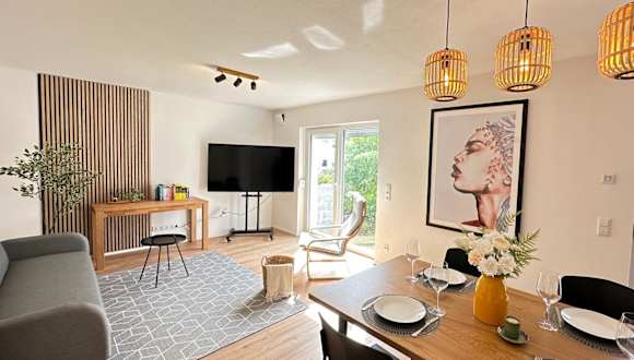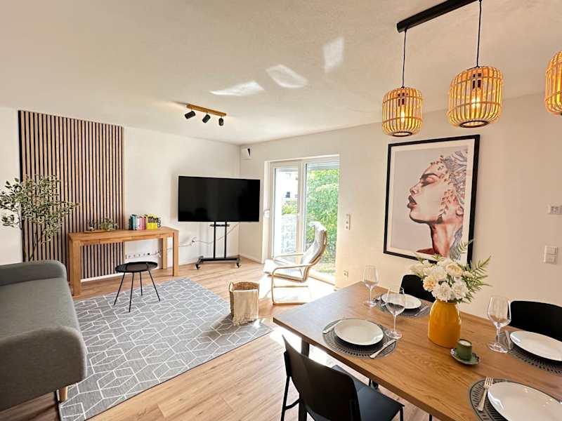 AB2 Luxuriöse EG-Wohnung mit Gartenblick & Garage I 3 Min zur S-Bahn I Nähe Messe Stuttgart bietet Gästen eine ansprechende Ferienwohnung mit Balkon, kostenlosem WLAN und Gartenblick. Die Unterkunft verfügt über einen Garten sowie kostenlosen Privatparkplatz. Die Wohnung wird von einem privaten Gastgeber geführt und ist Nichtraucher.