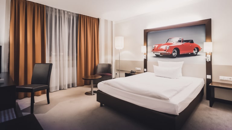 Unsere insgesamt 213 Zimmer und Suiten überzeugen durch ihre komfortable Größe ab 24 - 50 m² und ihr zeitgemäßes Design. Sie verbinden eine angenehme Atmosphäre mit einem ganz besonderen Interieur Konzept. Denn jedes unserer Zimmer erzählt ein Stück Automobilgeschichte. So erleben Sie bei jedem Besuch einzigartige Eindrücke und Einblicke in die faszinierende Welt des Automobils. Unsere 5 verschiedenen Zimmerkategorien sind ausgestattet mit Badewanne oder Dusche, WC, Fön, Telefon, LCD-Flachbild-TV/Radio, kleinem Kühlschrank, Wasserkocher mit gratis Tee- & Kaffeeauswahl, Klimaanlage, Schreibtisch, Einbausafe und WLAN. Mit einer Gesamtgröße ab 24 - 50 m² bieten Ihnen unsere Zimmer viel Platz für einen erholsamen Aufenthalt.