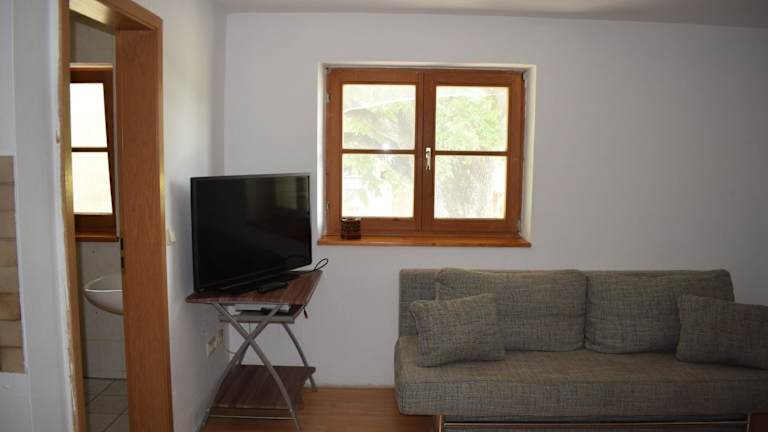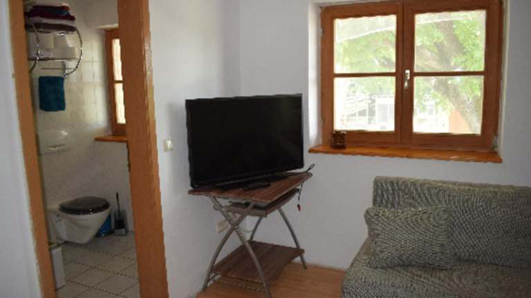Das Zimmer der Ferienwohnung umfasst ein Schlafzimmer und ist mit einem TV ausgestattet. Die gut ausgestattete Küche und das Badezimmer mit Dusche bieten zusätzlichen Komfort.