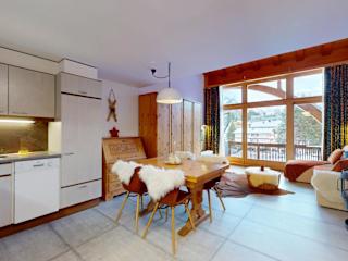 Die Ferienwohnung verfügt über ein Schlafzimmer und ein Badezimmer. Zur Ausstattung gehören Bettwäsche, Handtücher, ein TV und eine voll ausgestattete Küche. Ein Balkon mit Bergblick ergänzt die Einrichtung. Die Unterkunft ist zudem mit Heizung ausgestattet.