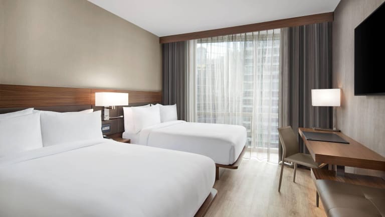 Das AC Hotel by Marriott New York Downtown in New York bietet seinen Gästen einen komfortablen Aufenthalt im Herzen der Stadt. Mit seiner günstigen Lage in der Nähe von Sehenswürdigkeiten wie dem National September 11 Memorial & Museum und dem One World Trade Center ist es der ideale Ausgangspunkt, um die Stadt zu erkunden. Die Zimmer sind modern und gut ausgestattet, und das Hotel bietet auch ein Fitnesscenter und ein Businesscenter. Genießen Sie ein Frühstück zum Mitnehmen und den freundlichen Service des Personals.