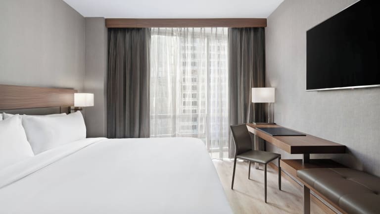 Die Zimmer im AC Hotel by Marriott New York Downtown sind modern und komfortabel eingerichtet. Sie verfügen über Annehmlichkeiten wie einen Schreibtisch, einen Flachbild-TV und kostenfreies WLAN. Einige Zimmer bieten einen atemberaubenden Blick auf die Stadt und verfügen über ein eigenes Badezimmer mit Badewanne und kostenfreien Pflegeprodukten. Ein Sitzbereich lädt zum Entspannen ein.