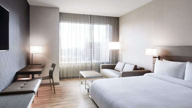 Die klimatisierten Zimmer sind mit einem Doppelbett sowie einem Sofabett ausgestattet und verfügen über einen Kühlschrank, eine Kaffeemaschine und einen Flachbild-TV. Jedes Zimmer bietet ein eigenes Badezimmer mit Dusche, Föhn und Handtüchern. Rollstuhlgerechte Zimmer stehen ebenfalls zur Verfügung.