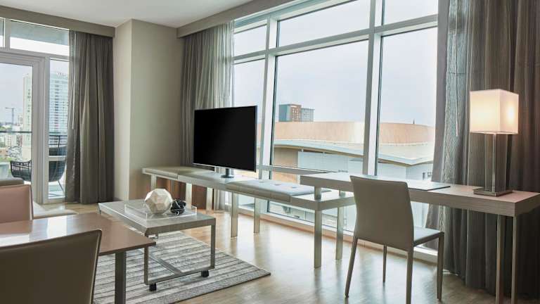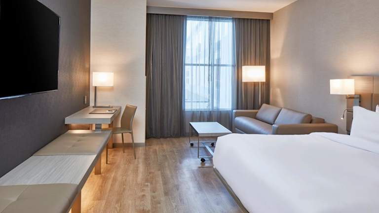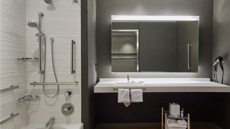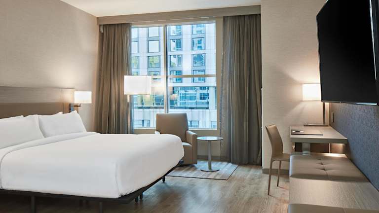 Die Zimmer im AC Hotel Nashville Downtown sind modern und durchdacht gestaltet. Sie bieten eine offene Raumgestaltung, um ein Gefühl von Offenheit zu schaffen und Unordnung zu minimieren. Jedes Zimmer verfügt über einen gemütlichen Sitzbereich, einen Flachbild-Kabel-TV, einen offenen Kleiderschrank und einen eleganten Schreibtisch. Hier können Sie sich nach einem ereignisreichen Tag in Nashville wunderbar entspannen.