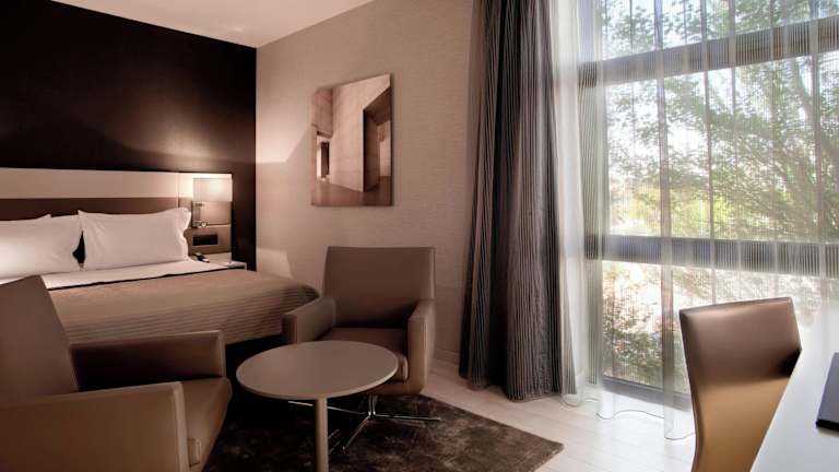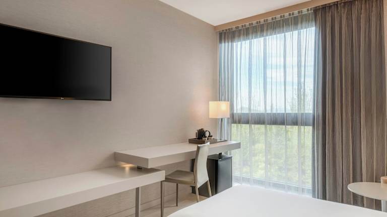 Die Zimmer im AC Hotel San Cugat by Marriott sind elegant eingerichtet und in warmen Beigetönen gehalten. Sie verfügen über ein Kingsize-Bett, einen Flachbild-TV, eine Minibar und ein eigenes Bad mit kostenlosen Pflegeprodukten. Jedes Zimmer bietet den Gästen den Komfort, den sie für einen angenehmen Aufenthalt benötigen.