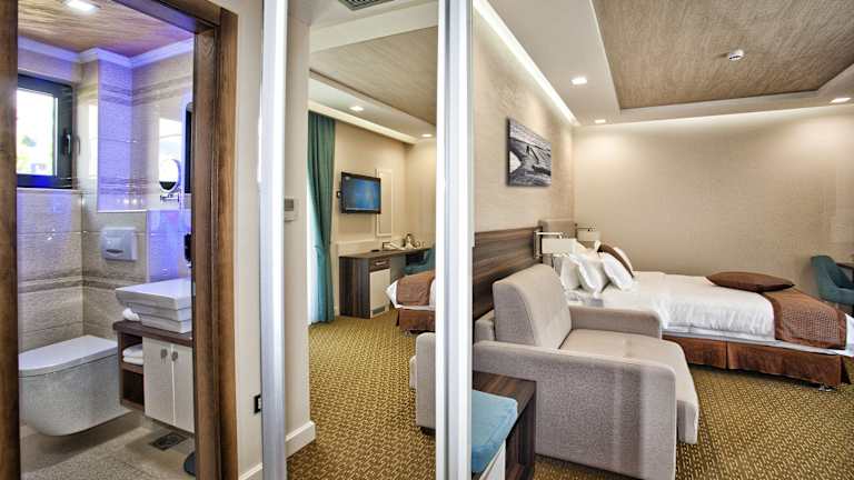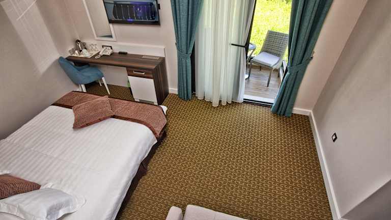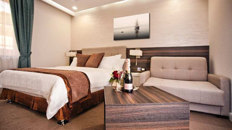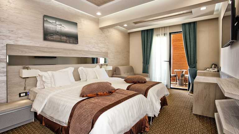 Die Zimmer im Hotel ACD Wellness & Spa sind komfortabel eingerichtet und verfügen über Klimaanlage, Heizung und einen Balkon oder eine Terrasse. Zur Ausstattung gehören ein Doppelbett, ein Sofa, ein Safe, eine Minibar, eine Tee- / Kaffeemaschine, ein Bügelset, ein Telefon, ein Flachbildfernseher und kostenfreies WLAN. Die Badezimmer sind mit einer Dusche ausgestattet.