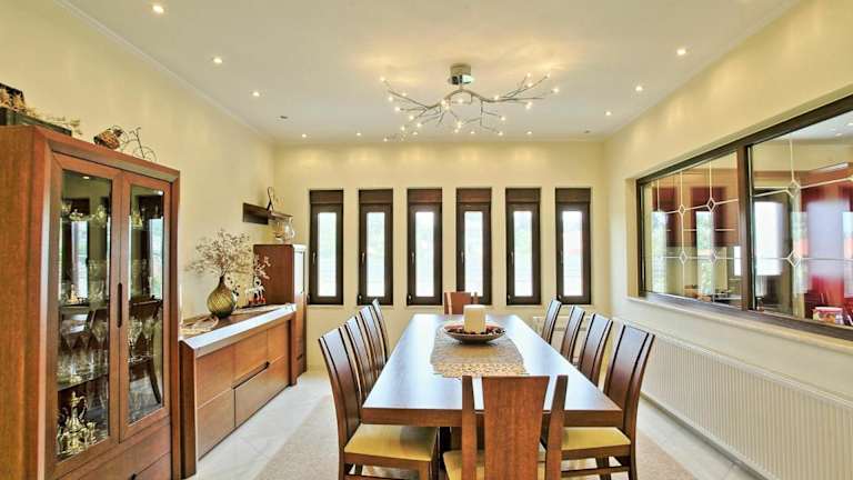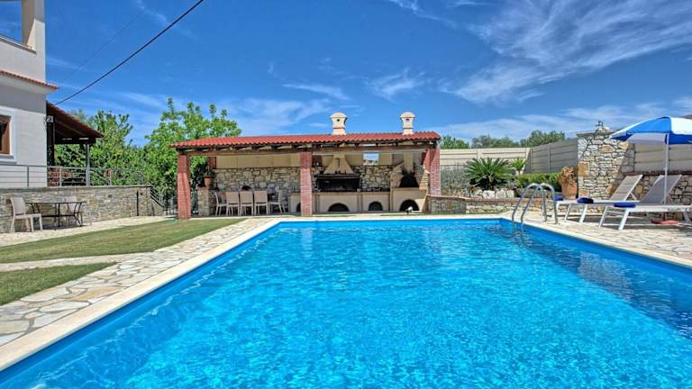 Die Villa verfügt über 5 Schlafzimmer, ein Wohnzimmer, eine voll ausgestattete Küche mit Kühlschrank und Kaffeemaschine sowie 5 Badezimmer mit Dusche und Haartrockner. Klimaanlage ist ebenfalls vorhanden, und ein Flachbild-TV sorgt für Unterhaltung.