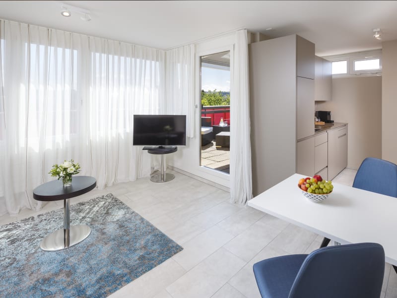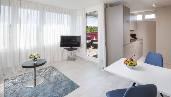 Du findest 54 moderne Serviced Apartments an bester Lage in Opfikon-Glattbrugg. Der Flughafen Zürich, die Messe Zürich sowie der Hauptbahnhof Zürich sind in wenigen Minuten bequem erreichbar. Restaurants und Einkaufsmöglichkeiten befinden sich in Gehdistanz. Auf Anfrage stehen Parkplätze gegen Gebühr während dem Aufenthalt zur Verfügung.