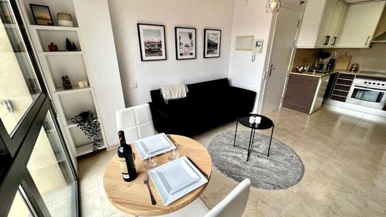 Die Ferienwohnung besteht aus einem separaten Schlafzimmer und einer voll ausgestatteten Küche, die mit einem Kühlschrank und einem Geschirrspüler ausgestattet ist. Zudem verfügt die Unterkunft über ein Badezimmer. Handtücher und Bettwäsche werden zur Verfügung gestellt. Die Unterkunft ist klimatisiert.