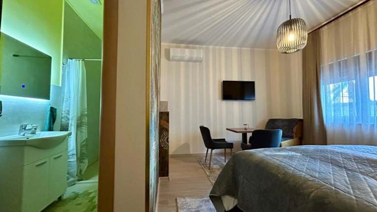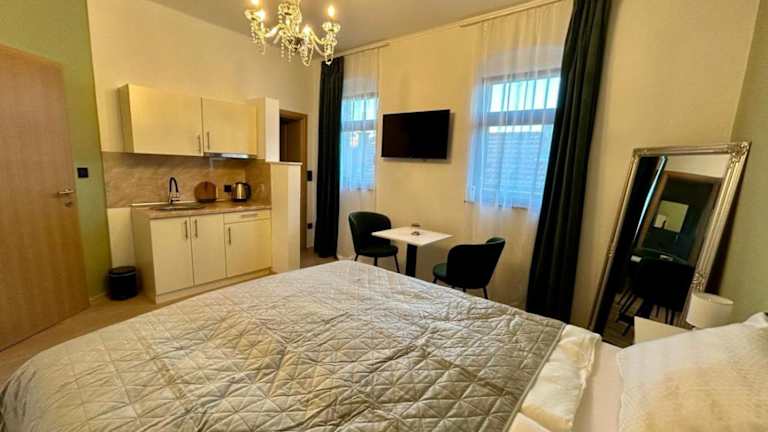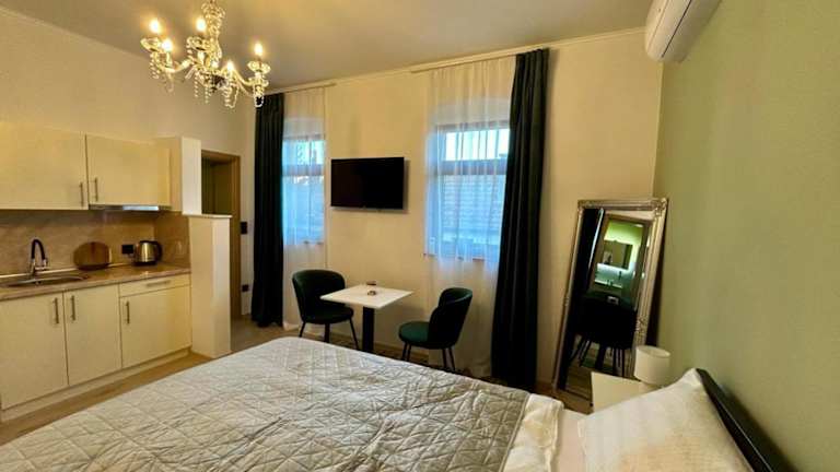Die Zimmer sind ausgestattet mit Klimaanlage, voll ausgestatteter Küchenzeile, Flachbild-TV, eigenem Badezimmer mit Dusche, kostenlosen Pflegeprodukten und Haartrockner. Den Gästen steht eine Minibar und eine Kaffeemaschine zur Verfügung.