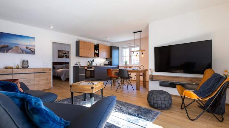 Die Ferienwohnung umfasst 2 Schlafzimmer, ein Wohnzimmer, ein Flachbild-TV, eine gut ausgestattete Küche mit Geschirrspüler und Herdplatte sowie 2 Badezimmer mit Dusche. Des Weiteren bietet die Suite einen Balkon mit Bergblick und eine Terrasse. Handtücher und Bettwäsche werden bereitgestellt.
